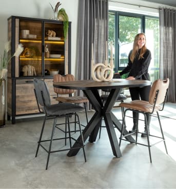 Barstoelen en bartafels zijn populaire items in het interieur. Veel mensen vinden het fijn om extra hoog te zitten. Barstoel Bristol zit heerlijk en heeft een stoer eigentijds design. De barstoel heeft zwart metalen poten en is bekleed met de stof Pala in de kleur cognac. Pala is een onderhoudsvriendelijke stof met de uitstraling van leder. De barstoel is in verschillende kleuren verkrijgbaar. Tevens is bovenop een greep geïntegreerd, die voorkomt dat de bekleding vies wordt van het vastpakken.